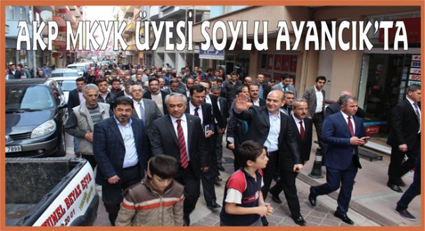 Cumhuriyet meydanında Belediye Başkanı Ayhan Ergün, Ak Parti İlçe Başkanı Yılmaz Özünlü ile çok sayıda partili tarafından karşılanan Süleyman Soylu ’ya İçişleri Komisyon Başkanı ve Ak Parti Sinop Milletvekili Mehmet Ersoy eşlik etti.Partililerle tek tek el sıkışan Ak Parti Genel Başkan Yardımcısı Soylu ve beraberindekiler daha sonra Ak Parti seçim koordinasyon merkezini ziyaret etti. Belediye Başkanı Ayhan Ergün’ün hoş geldiniz konuşmalarından sonra söz alan Ak Parti Genel Başkan Yardımcısı Süleyman Soylu, Ülkemiz için Ayancık için çok önemli bir seçim arifesinde partililerle buluşmaktan büyük mutluluk duyduğunu ve gözlerde ki ışıltının zaferin habercisi olduğunu belirtirken son onyılda Ayhan Ergün Başkanlığında ilçede önemli projelerin hayata geçirildiğini ve sıkıntılarından arındırıldığını belirtti. Kendisinin de İstanbul’da Ayancıklılar mahallesinde büyüdüğünü ve bu sebepten dolayı kendini Ayancık ’lı gibi hissettiğini belirten Soylu, inşallah 30 Mart akşamı halkımız bir kez daha daha büyük bir güçle Ayhan Başkan’ la yola devam diyecek ve sonrasında bizde vekilimiz ile birlikte üzerimize düşen ne ise, hangi konuda destek isteniyorsa onu yerine getireceğiz, dedi.