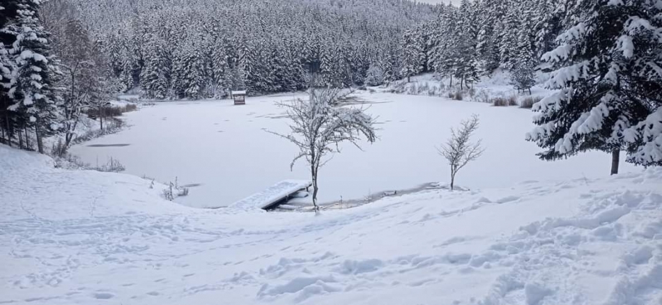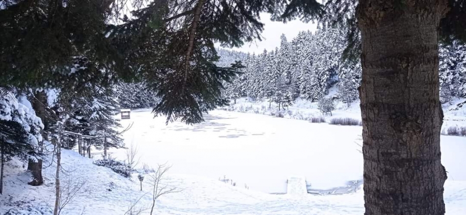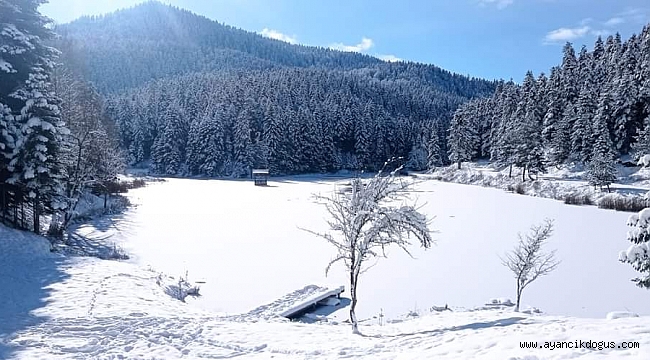 Ayancık ilçesi sınırlarında yer alan Akgöl Tabiat Parkı'nda bulunan Akgöl'ün yüzeyi, buzla kaplandı.