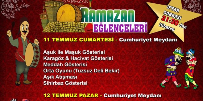 İftar sonrası Cumhuriyet meydanında düzenlenecek olan programda, Karagöz ile Hacivat, Aşuk ile Maşuk, Meddah gösterisi, Orta oyunu (Tuzsuz Deli Bekir), Sihirbaz gösterisi ve çeşitli sürpriz gösteriler yer alacak.