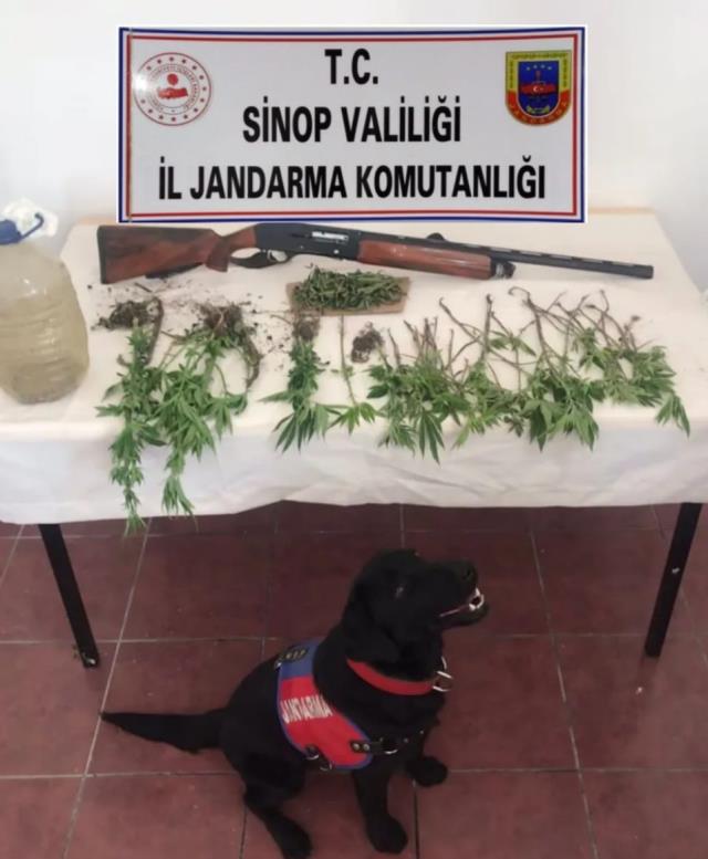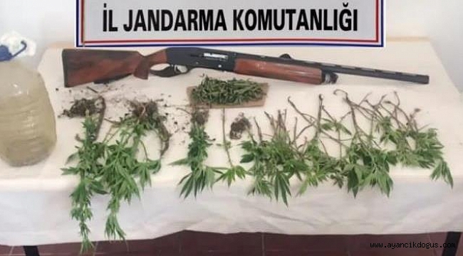 Ekiplerce şüphelinin evi ve eklentilerinde yapılan aramalarda 51 kök kenevir bitkisi 150 gram kubar esrar ve bir adet ruhsatsız av tüfeği ele geçirildi.