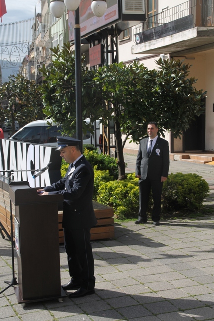 Emniyet müdürlüğü çelenginin Demokrasi ve Cumhuriyet meydanında bulunan Atatürk Anıtı'na sunulmasının ardından saygı duruşunda bulunuldu ve İstiklal Marşı okundu. Akabinde sonra günün anlam ve önemini belirten konuşma İlçe Emniyet Müdürü Hakan Evcil Tarafından yapıldı. Ardından Merkez Camiinde saat 12:00-13:00 arasında şehitlerimiz adına Mevlid-i şerif okutuldu.