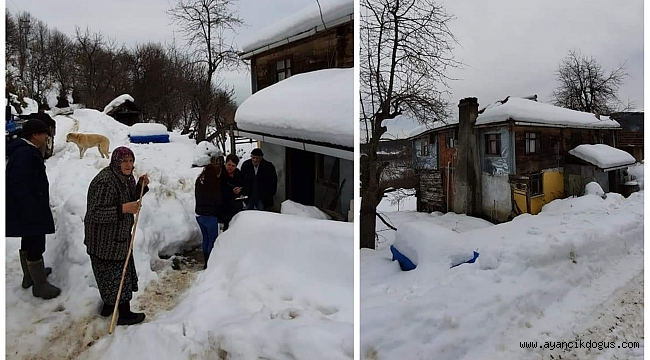 Ayancık Kestanelik Köyü Yukarı Mahalle'de çatılarında kar yağışı nedeniyle çökme meydana gelen Aksoy ailesi video paylaşarak yardım istemişti.