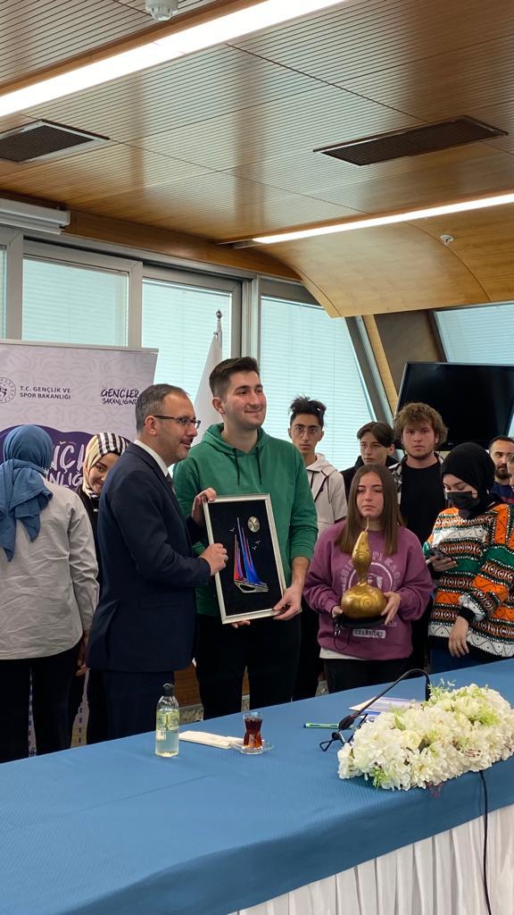 11 Ağustos'ta Ayancık'taki sel felaketinde görev alan gönüllü gençler, Gençlik ve Spor Bakanı Dr. Mehmet Kasapoğlu’nu ziyaret ettiler. Bakan Kasapoğlu'na ziyaretleri sonrasında Güzel Sanatlar Atölyesinde gençler, hazırladıkları çeşitli el sanatları ürünlerini hediye olarak takdim ettiler.