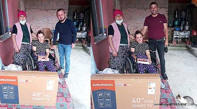Teslim sırasında engelli genç kızın vakur duruşu ise dikkatlerden kaçmadı. "Başka bir ihtiyacın var mı?" diye sorulduğunda genç kız elini bağrına koyup gülümseyerek sadece teşekkür etti. Bu görüntülerin Vitrinhaber'de yayınlanması üzerine bir yardımsever iş insanı, genç kıza sürpriz yapmak istedi. İsmini açıklamak istemeyen hayırsever vatandaş Sedef'e bir tablet ile televizyon gönderdi. Hediyeleri Türkeli İl Genel Meclisi Üyesi Bilal Öztürk ile köyün muhtarı teslim etti.