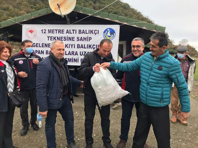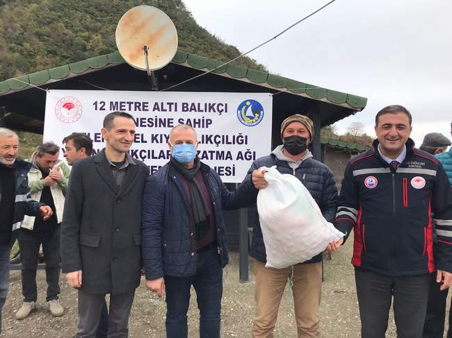 Sinop'ta yürütülen "12 Metre Altı Balıkçı Teknesine Sahip Geleneksel Kıyı Balıkçılığı Yapan Balıkçılara Uzatma Ağı Malzeme Temini Projesi" kapsamında 3 ayrı balıkçılık kooperatifinin ortaklarına ağ desteği verildi.