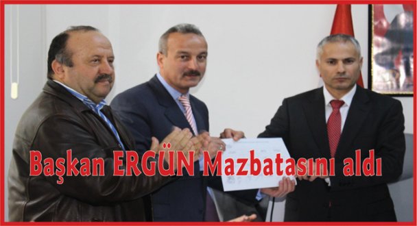 30 Mart seçimlerinde Adalet ve Kalkınma Partisinden 3. Kez Belediye Başkanlığı'na seçilen Ayhan Ergün mazbatasını aldı.