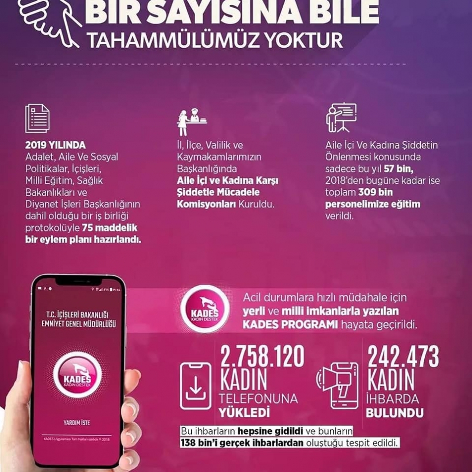 Polisler, vatandaşa KADES’in, aile içi ve kadına yönelik şiddet durumunda bir tuşla 112 Acil Çağrı Merkezine ulaşılmasını ve olay yerine en yakın ekibin sevk edilmesini sağlayan bir uygulama olduğunu anlattı.