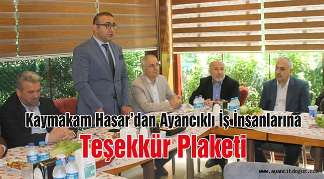Yemekte konuşan İlçe Kaymakamı Hasar, “Ben de bir depremzede olarak siz Ayancıklı iş insanlarımızın deprem bölgelerine ve Afat’a yaptığınız ayni ve nakdi yardımlarınızdan ötürü teşekkür ediyorum. Allah böyle bir felaketi bir daha yaşatmasın.” Dedi. Akabinde İş insanlarına Kaymakam Hasar tarafından plaket takdim edildi.