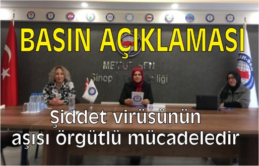 Memur-Sen Sinop İl Temsilciliği kadına şiddet açıklaması: "Şiddet virüsünün aşısı örgütlü mücadeledir"
