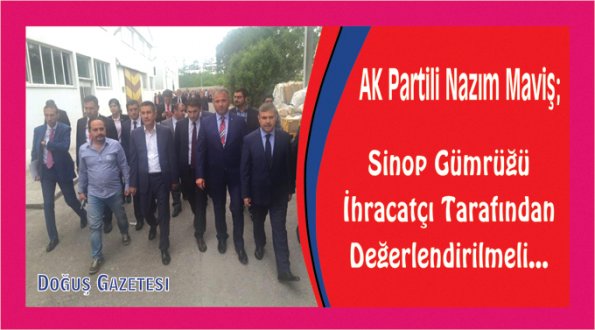 AK Parti Yerel Yönetimler Başkan Yardımcısı ve Sinop Milletvekili Adayı Nazım Maviş, yeniden açılacak Sinop Gümrüğüyle ilgili üreticilere, iş adamlarına ve ihracatçılara seslenerek Sinop Gümrüğünü değerlendirmeleri çağrısında bulundu.