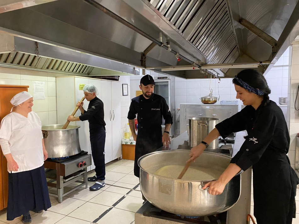 İmkanlarımızın el verdiği ölçüde güzel bir program yapmak arzusu ile pansiyonumuza ait mutfağımızda pişirdiğimiz asırlık ağız tadımız olan keşkek ikramında bulunduk…
