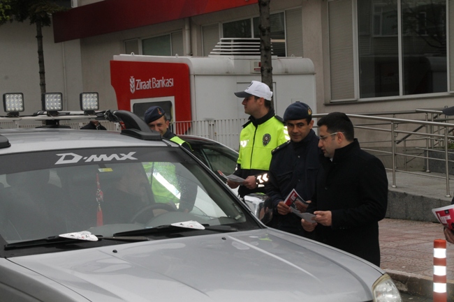 İçişleri Bakanlığı talimatıyla Türkiye’de eş zamanlı uygulama yapan İlçe Kaymakamlığı öncülüğünde Cumhuriyet meydanı PTT önünde “Yayalar için 5 adımda güvenli trafik” uygulaması yapıldı.