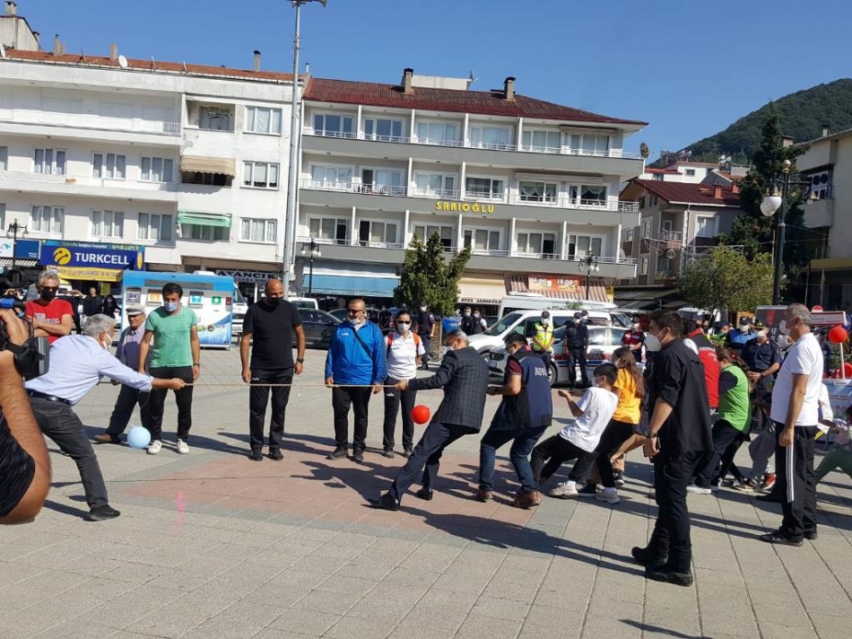 Ayancık ilçesinde sel felaketini yaşayan çocuklara moral olacak etkinlikler düzenlendi. Çocuklar Sinop protokolüyle birlikte halat çekti, ip atladı, yakar top oynadı.