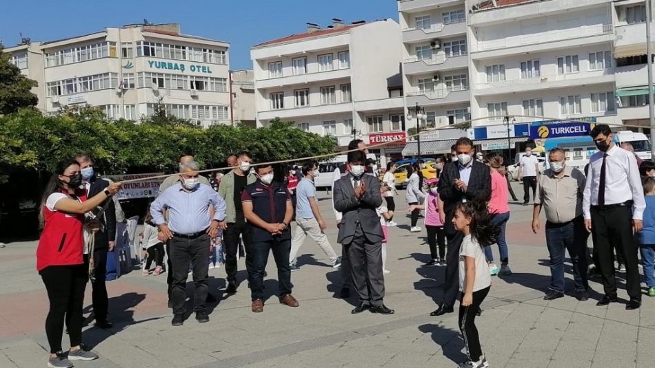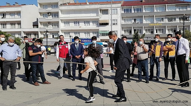 Vali Karaömeroğlu çocuklarla ip atladı, halat çekti