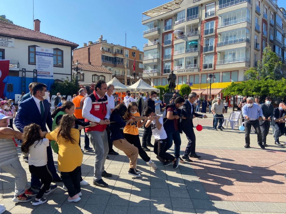 Programda Sinop Valisi Erol Karaömeroğlu, Ayancık Kaymakamı İsmail Pendik ve bazı protokol üyelerinin de çocuklarla halat çekme ve yakan top oynamaları renkli görüntüler oluşturdu.